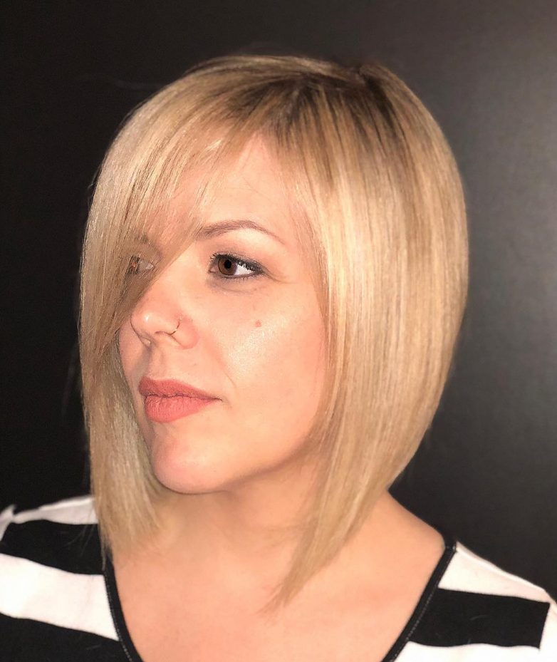 Стрижки с челкой для женщин после 40 с полным лицом