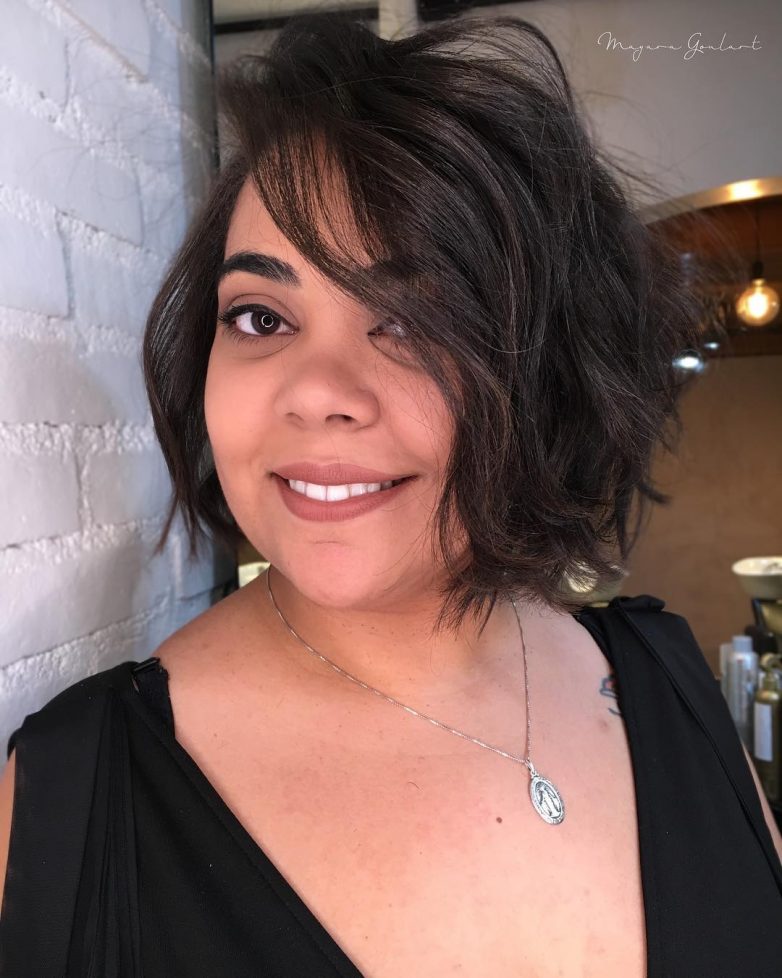 Стрижки, которые имеют длину на уровне подбородка только ухудшают образ полной дамы.