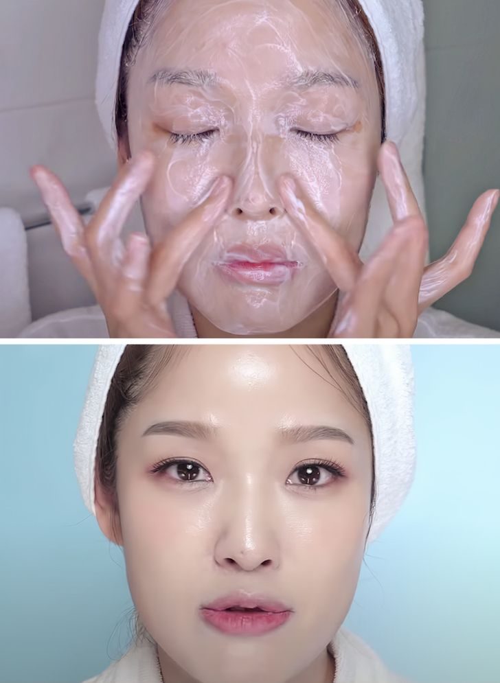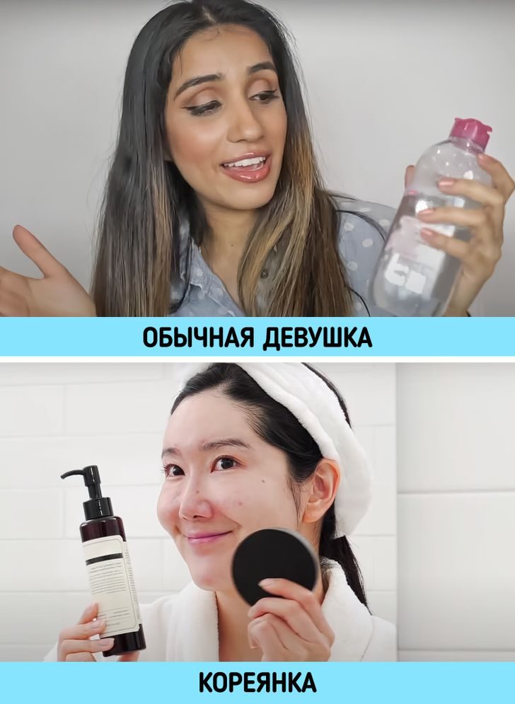 Есть у азиатских девушек и простой в исполнении лайфхак, превращающий жительниц Кореи в настоящих красоток. Девушки 10 минут умываются по системе 424, которая заменяет им целый комплекс привычных нам ежедневных процедур в ванной. Первые 4 минуты такого ухода девушки убирают остатки макияжа при помощи масла, затем в течение 2 минут лицо моют пенкой, а потом 4 минуты посвящают небольшому контрастному душу для области лица и шеи.