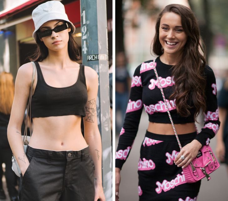 В конце 90-х и начале нулевых многие звезды — от Дженнифер Лопес до Бритни Спирс — открывали свои животы на всеобщее обозрение и демонстрировали пирсинг в пупке. Потом из моды вышла одежда с заниженной талией, и оголенный живот тоже перестал быть частью модного образа. Однако в последние пару лет голый живот снова стал актуальным трендом, правда, с некоторыми изменениями. Так, сейчас модно показывать лишь несколько сантиметров кожи под ребрами, не демонстрируя при этом пупок.