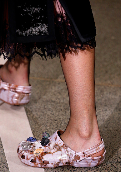Изначально кроксы были придуманы для любителей яхтенного спорта. Эта обувь и правда идеальна для выхода в море: она удобная, не скользит и не оставляет следов на палубе. У кроксов был один недостаток: не самый изысканный и изящный внешний вид. Еще совсем недавно сабо бренда Crocs было не стыдно носить разве что на пляже или на отдыхе, но пару лет назад ситуация кардинально изменилась и кроксы превратились в такой же объект желания, как дизайнерские туфли и кроссовки. В них не стесняясь ходят мировые звезды, а модные бренды с удовольствием создают коллаборации.