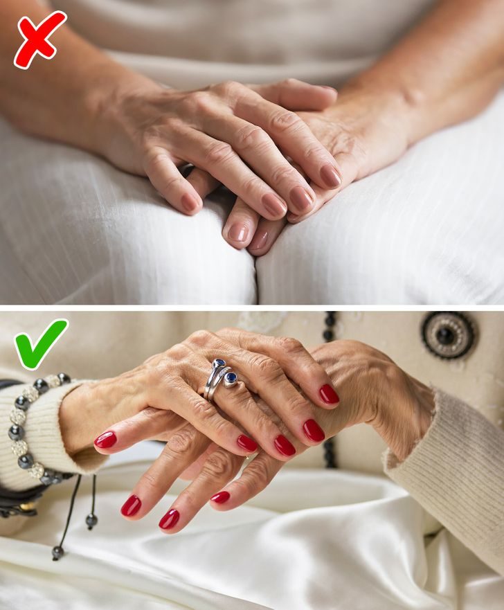 Ухоженные руки — непременная часть образа элегантной женщины. Что касается маникюра, то, к примеру, итальянки стараются избегать лаков для ногтей нюдовых оттенков и обращают внимание на более яркие цвета: красный, бордовый. Такой маникюр выглядит более изысканно, а еще именно эти оттенки отлично сочетаются с загорелой кожей.