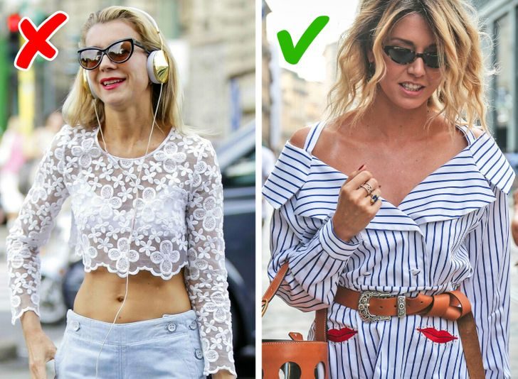 Показывать слишком много кожи, особенно в области живота, чаще всего не вполне уместно в повседневной жизни. Разумеется, если вы не на пляже. Однако это вовсе не значит, что нужно носить исключительно закрытую одежду. Вы можете деликатно обнажить зону декольте или поступить как француженки и оголить ноги. Однако при этом ваш образ в целом должен быть максимально расслабленным.