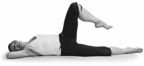 Повернитесь на другой бок и проделайте то же с другой ногой.