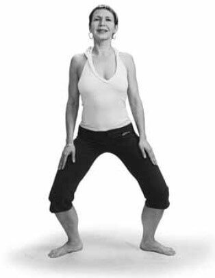 Встаньте прямо, ноги на ширине плеч, носки наружу.