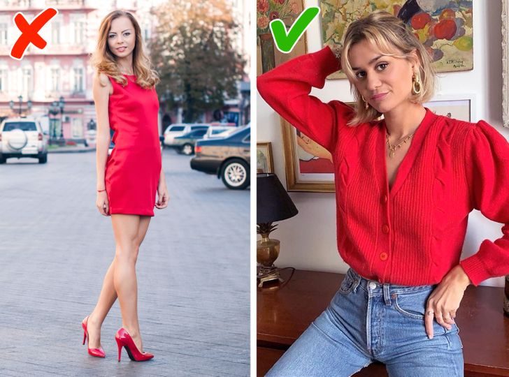 Облегающие женственные наряды красного цвета — стопроцентный способ обратить на себя внимание. Но можно сгладить эффект, выбирая приглушенные оттенки и более свободный крой одежды. Образ в красном цвете может быть сдержанным и даже милым.
