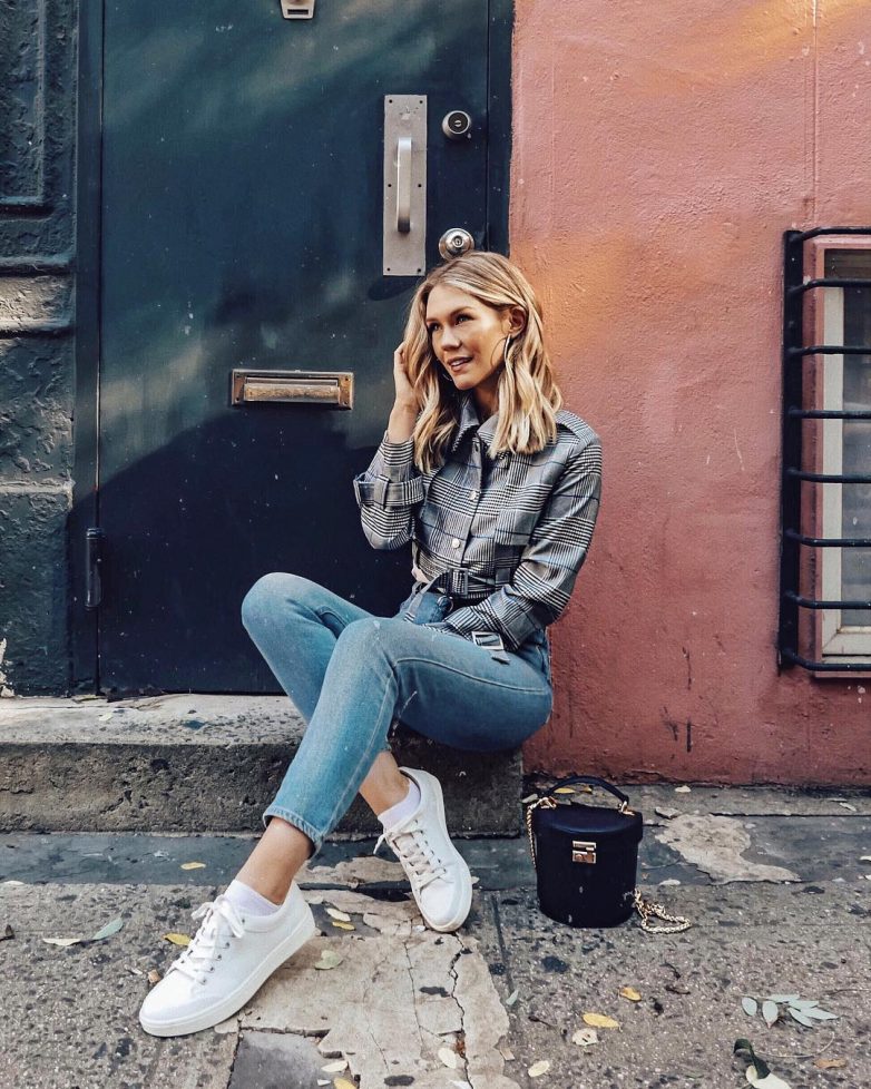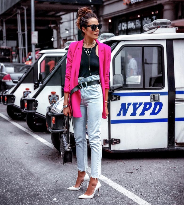 В городском стиле джинсы это базовая вещь гардероба. В этом году это могут быть скинни, клеш, дудочки или мом. Тут вы выбирайте именно ту модель, которая лучше всего садится на вашу фигуру. При этом советуем обратить внимание, что сейчас в тренде завышенная талия и укороченная длина штанин.