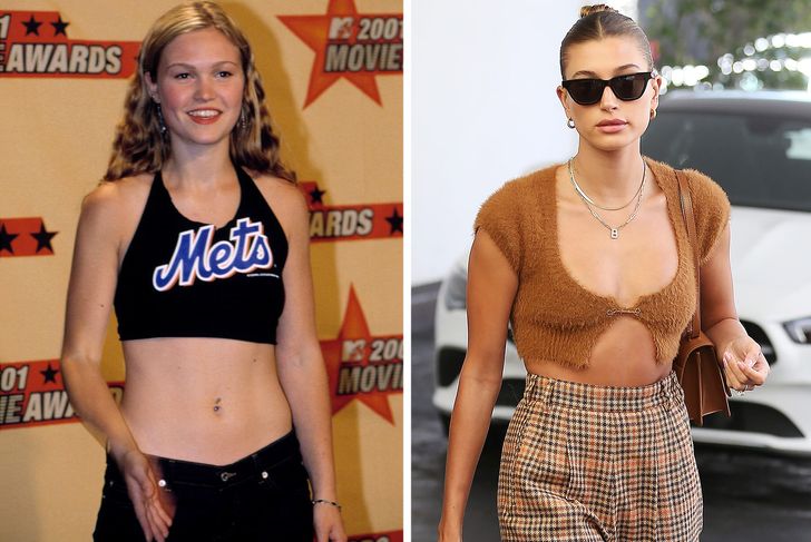 В нулевые остромодными были вещи с заниженной талией — это были и джинсы, и юбки, и шорты. Чем больше демонстрировалось кожи, тем лучше. Во многом благодаря этому тренду в моду вошел пирсинг пупка и укороченные топы. Сегодня кроп-топы по-прежнему актуальны, но при этом поколение Z пошло по противоположному пути и предпочитает носить вещи с высокой линией талии, которые все-таки закрывают пупок. Возможно, это связано с распространением бодипозитива и заботой о том, чтобы модные вещи хорошо смотрелись на разных фигурах.