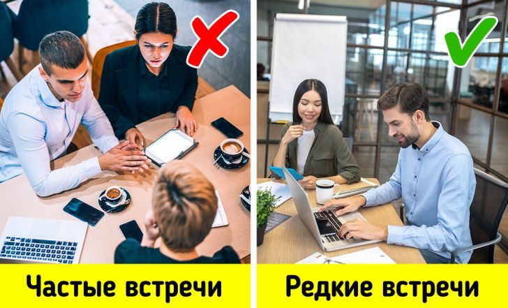 По возможности лучше отказываться от личных встреч и проводить их как можно реже. А если все же устраивать собрания, то они должны быть как можно короче.