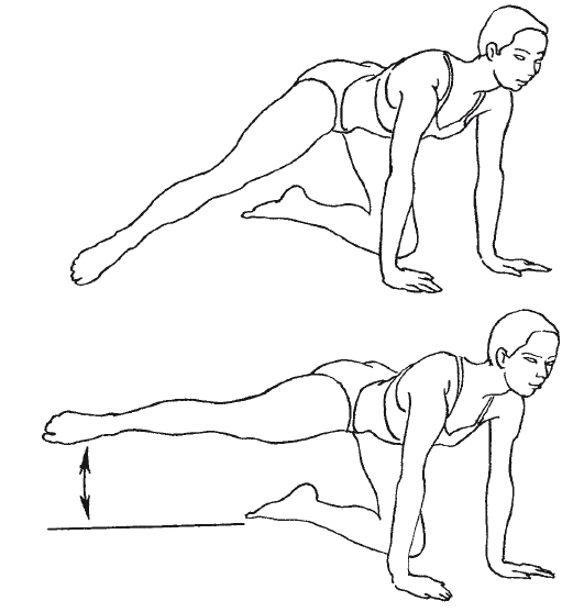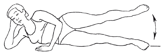 Для мышц внутренней поверхности бедра.Лягте на правый бок, согните руку в локте, положите голову на кисть руки. Согните левую ногу и поставьте стопу на пол (см. рис.). Ягодицы во время упражнения должны быть напряжены.