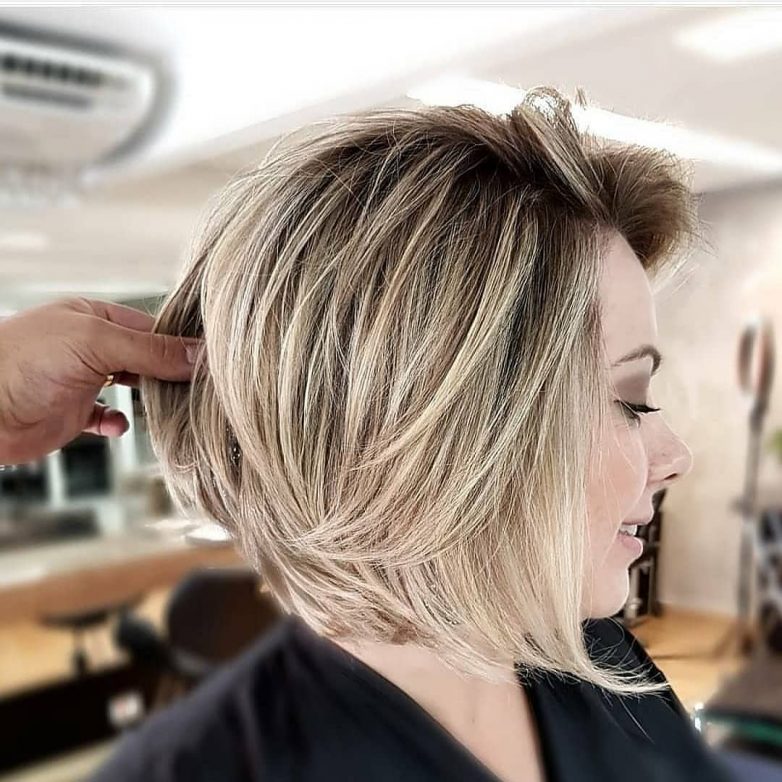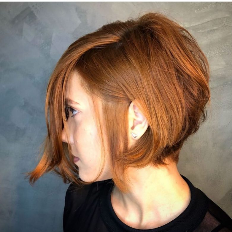 Для круглолицых и женщин с треугольным или квадратным лицом, подойдет боб-каре, который спрячет выделяющиеся части с помощью удлиненных и объемных прядей спереди;