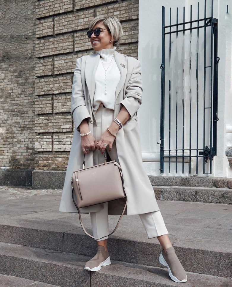 Классическое пальтоЭто «must have» в женском гардеробе. Пальто средней длины защитит от холода и ветра, гармонично завершит образ уверенной в себе элегантной женщины. Под верхнюю одежду можно надеть платье, джинсы, брюки, блузы. Не стоит зацикливаться на идеальности, в 40 лет допускается легкая небрежность, которая создает особенный шарм.