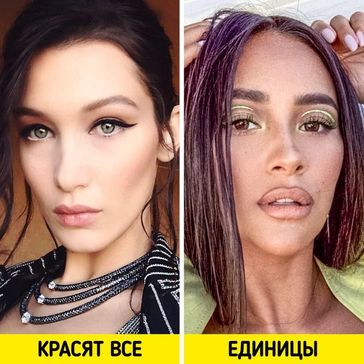 Что касается стрелок на глазах, то сейчас чем необычнее — тем интереснее. Можно сделать классические стрелки ярких контрастных оттенков — однотонные или, например, с красивыми переходами. Причем это могут быть как переходы одного цвета от бледного до насыщенного, так и экстремальные сочетания, например, розового с салатовым. Также помимо стрелок можно нарисовать еще графику на глазах — провести драматичную линию под бровью.