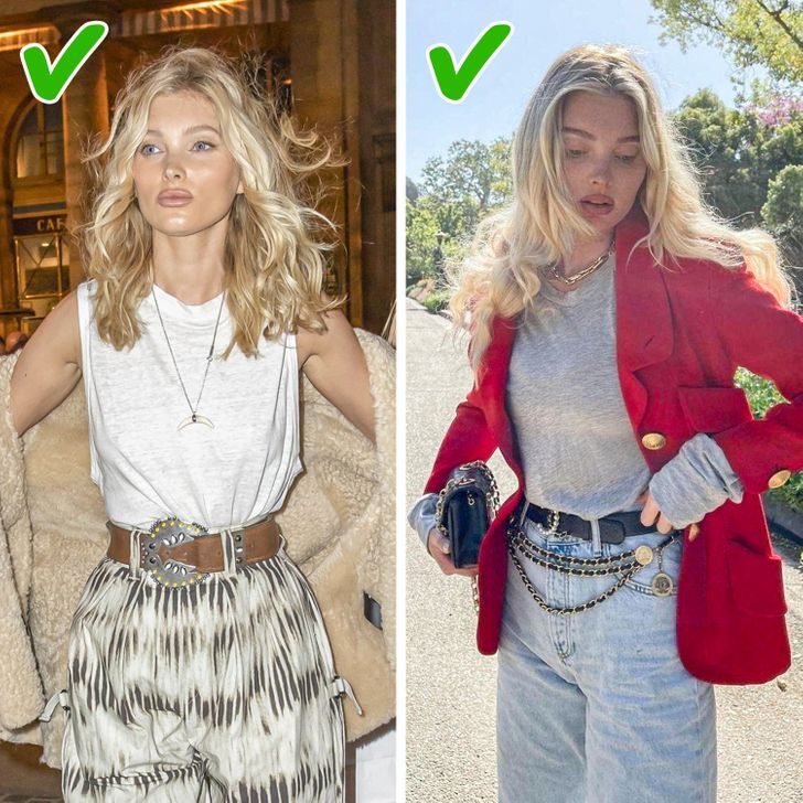 Обычно, если кажется, что в образе чего-то не хватает, то это не кажется. И ремень может решить эту проблему. Некоторые предметы гардероба делают фигуру бесформенной, и тут-то на помощь приходит ремень. Он подчеркнет изгибы в мгновение ока. Для базы понадобятся черный или темно-коричневый универсальный кожаный ремень. А для особых случаев выбор неограничен — из ткани, экокожи, металла, джута, кружева, или же яркие спортивные ремни, даже с неоновыми элементами.