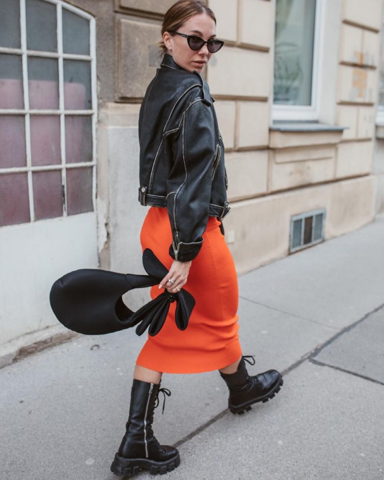 Чтобы сбалансировать модные осенью 2021 женственные юбки и платья, выбирайте грубую обувь на массивной подошве. Мужской стиль будет характерен для женских ботинок и сапог с высокой шнуровкой.