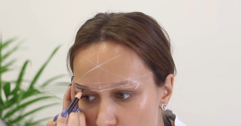 Брови никогда не рисуются идеально одинаковыми — одна обязательно будет чуть выше другой. Проверьте это, проведя параллельную основанию линию над высшими точками обеих бровей.