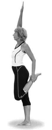 4. Правая нога и поднятая рука должны быть напряжены, пятку стараться прижимать к ягодице. Дышать ровно, спокойно.