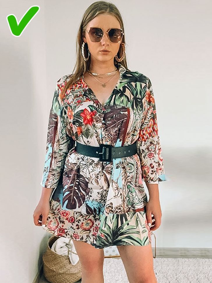 Чтобы создать более стройный силуэт, наденьте с платьем ремень в тон и немного выпустите ткань сверху. Так вы создадите объем над ремнем, добавив образу «воздуха». Контрастный же ремень привлечет внимание к области талии и животу.
