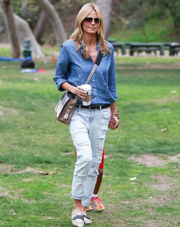 Если приспустить на бедра джинсы средней посадки, получится модный расслабленный оверсайз. Однако этого делать все же не стоит, если вы не можете похвастаться высоким ростом и параметрами топ-модели. Потому как такая вольность может исказить даже хорошую фигуру.