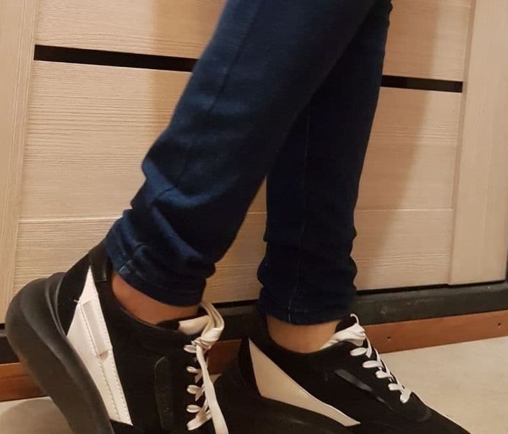 Штанины не должны перекрывать голенище ботильонов или коротких ботинок. Наиболее гармонично такой ансамбль будет смотреться, если джинсы будут заканчиваться на 1–2 см выше голенища обуви.
