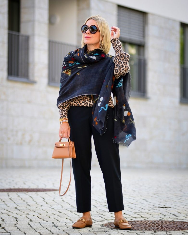 Осенний или весенний образ с модным жилетом в стиле тренч стоит разнообразить модным палантином. Он будет играть важную роль в образе – согреет даму и укажет на ее стильный вкус. Если хотите сделать красивый и яркий акцент, тогда рассмотрите вариант палантина в животном принте.