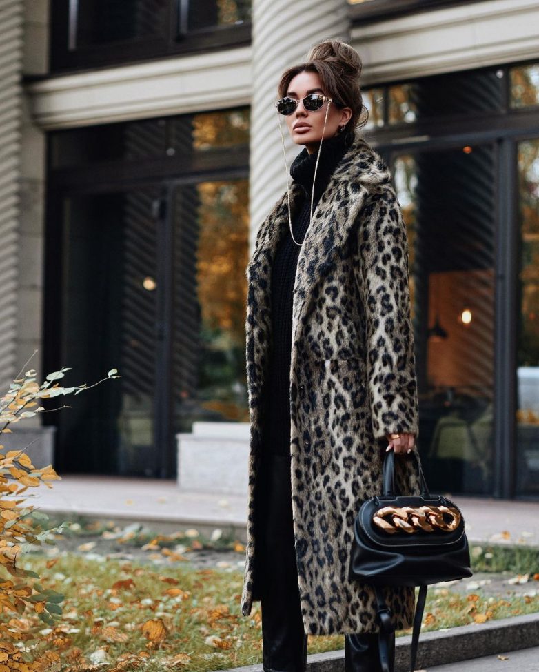 Как стильно носить шубу с животным принтом осенью
