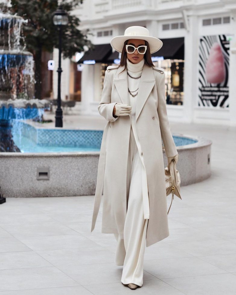Как освежить свой образ и сделать его совершенным? Очень просто – выбирайте белый цвет. Причем самый смелый вариант – монохром или тотал лук. В таком образе дама выглядит настолько идеально, что невозможно представить более привлекательного ансамбля.