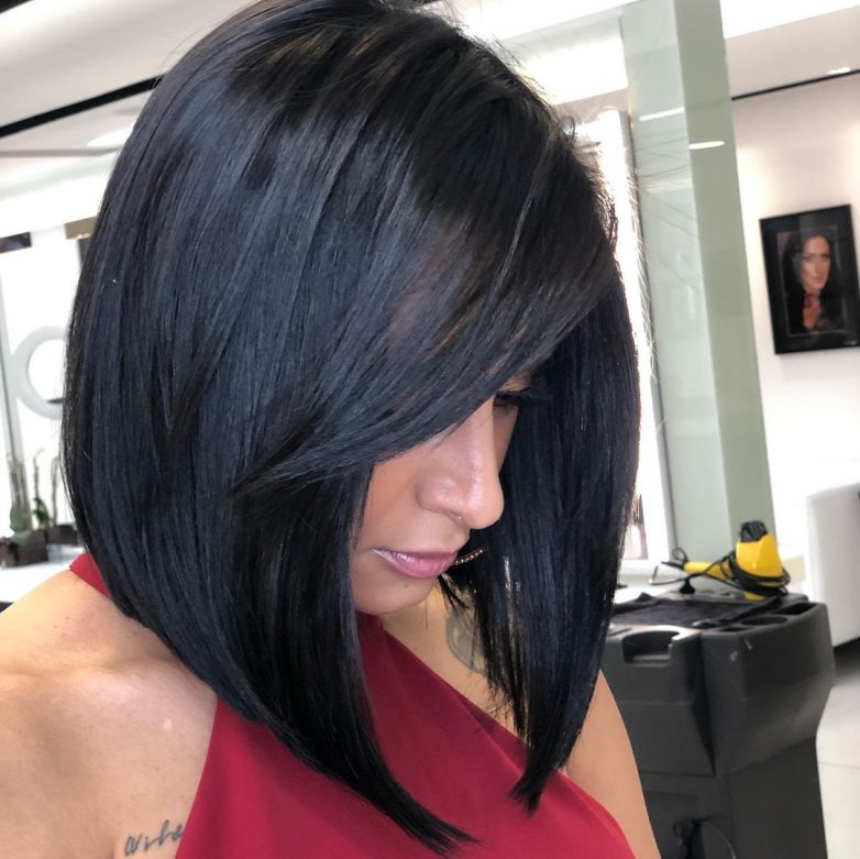 Если выбрать к бобу удлиненную челку, то можно получить образ романтичной и немного дерзкой женщины. Стрижка омолодит вас, так как пряди закроют проблемные зоны, и позволит быть всегда на высоте.