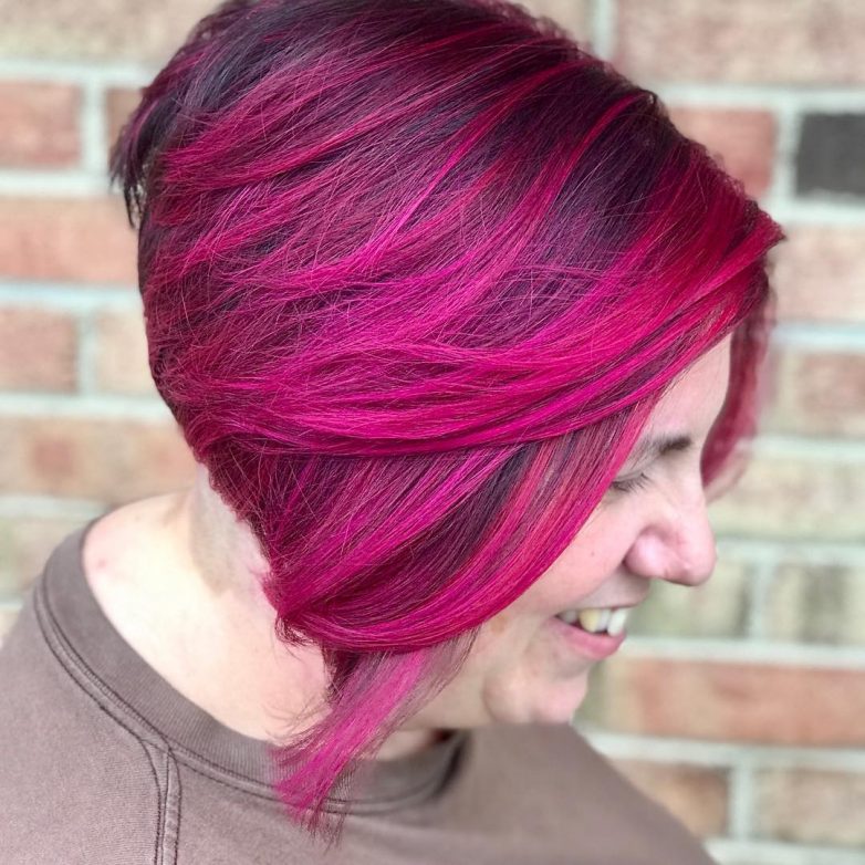 Нельзя использовать разноцветные оттенки. Но если все-таки хочется красок, то выделите несколько прядей, получится креативно и свежо. В этом сезоне моден коралл.
