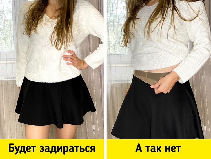 Самый распространенный пункт в ношении юбок и платьев, который доставляет неудобства, — это то, что юбка при ходьбе задирается вверх. А ведь существует несколько лайфхаков, которые помогут решить эту проблему.