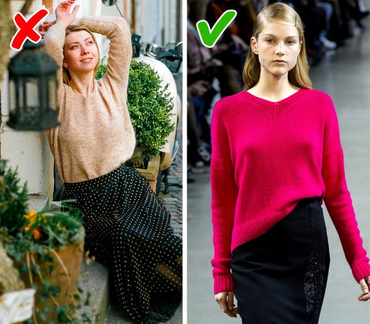 Что может доставить реальный дискомфорт, так это массивный верх, полностью заправленный в юбку. Особенно если теплый свитер сочетается с юбкой из легкой ткани. В этом случае получатся неудобные складки, которые будут вызывать неприятные ощущения при движении и даже могут испортить всю эстетику образа. Поэтому стилисты советуют, например, заправлять свитер не полностью, а лишь переднюю часть.