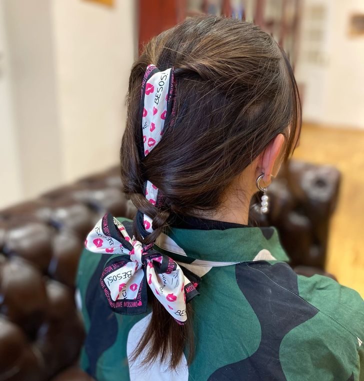 Косы с лентами — обязательный атрибут не только первоклассницы, но и современной модницы. Ленты в волосах добавят шарм и кокетливость любому повседневному образу. Попробуйте вплести аксессуар в классическую косу или зафиксировать им хвост.