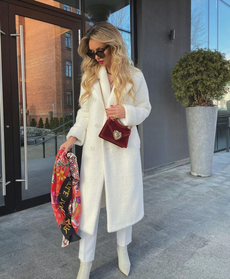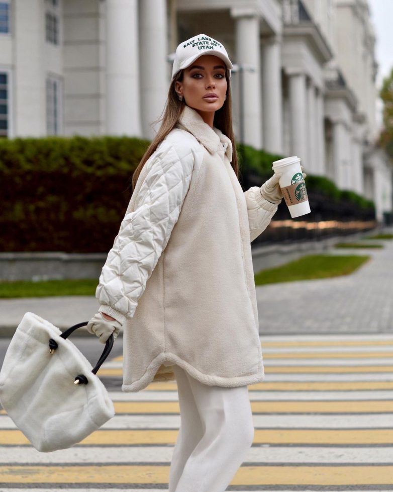Белый цвет – только для летних дней. Ломайте стереотипы! Белоснежные оттенки замечательно смотрятся в осенних образах. Теплые шубки и куртки, утепленные брючки и свитеры в белом цвете смогут выразить ваш нежный вкус. Если хотите комфорта, то выбирайте белый монохром в свободном стиле.