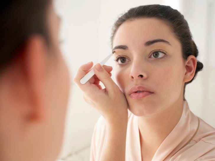 «Прежде чем приступить к работе с формой, выщипайте явно выбивающиеся волоски, — советует Ванита Парти, основательница салона Blink Brow Bar. — Затем зачешите брови наверх, так вы сможете определить, какие волоски нужно удалить. Удаляйте по паре волосков за раз, отходите и смотрите на свои брови издалека, прежде чем продолжить». Эксперт рекомендует наклонные пинцеты — они «дают возможность захватывать каждый волосок с корнем».