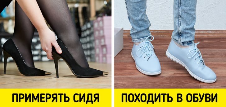 Мы часто примеряем обувь сидя. Но лучше сразу походить в туфлях по магазину и обратить внимание на звук, который они издают. Лишний скрип или щелчки говорят не в пользу качества обуви. Обычно они возникают из-за трения материалов друг о друга. К тому же представьте, как неловко вы можете чувствовать себя, если будете ходить по офису в скрипучей обуви.