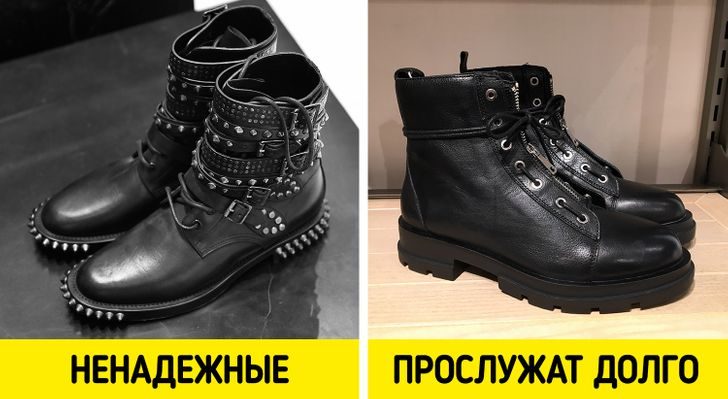 Иногда дизайнеры добавляют на обувь множество металлических деталей: и декоративные замки, и ремешки, и застежки. Порой модель может быть ими перегружена. Это само по себе никак не отражается на качестве обуви. Зато материал подобной фурнитуры может быть ненадежным — со временем она заржавеет или вовсе отвалится. А найти замену таким деталям для обуви очень нелегко. Можно уже в магазине повертеть их в руках — сразу станет понятно, крепко ли они закреплены и как долго вам прослужат.