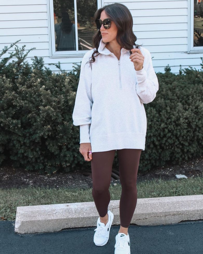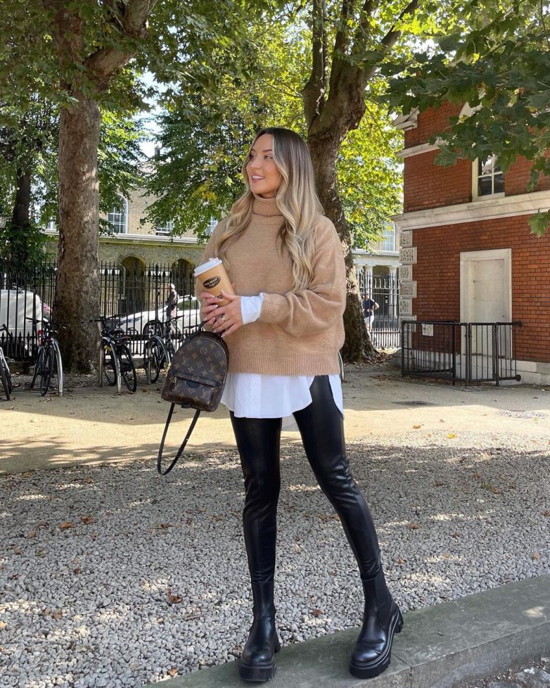 Туника – это свободный стиль и легкость любого образа. Именно поэтому женщины смело надевают с этой вещью кроссовки, лоферы, мокасины. На осень также можно попробовать собрать брутальный образ, для этого совместно с туникой выбирают грубые ботинки, а наверх надевают кожаную куртку.