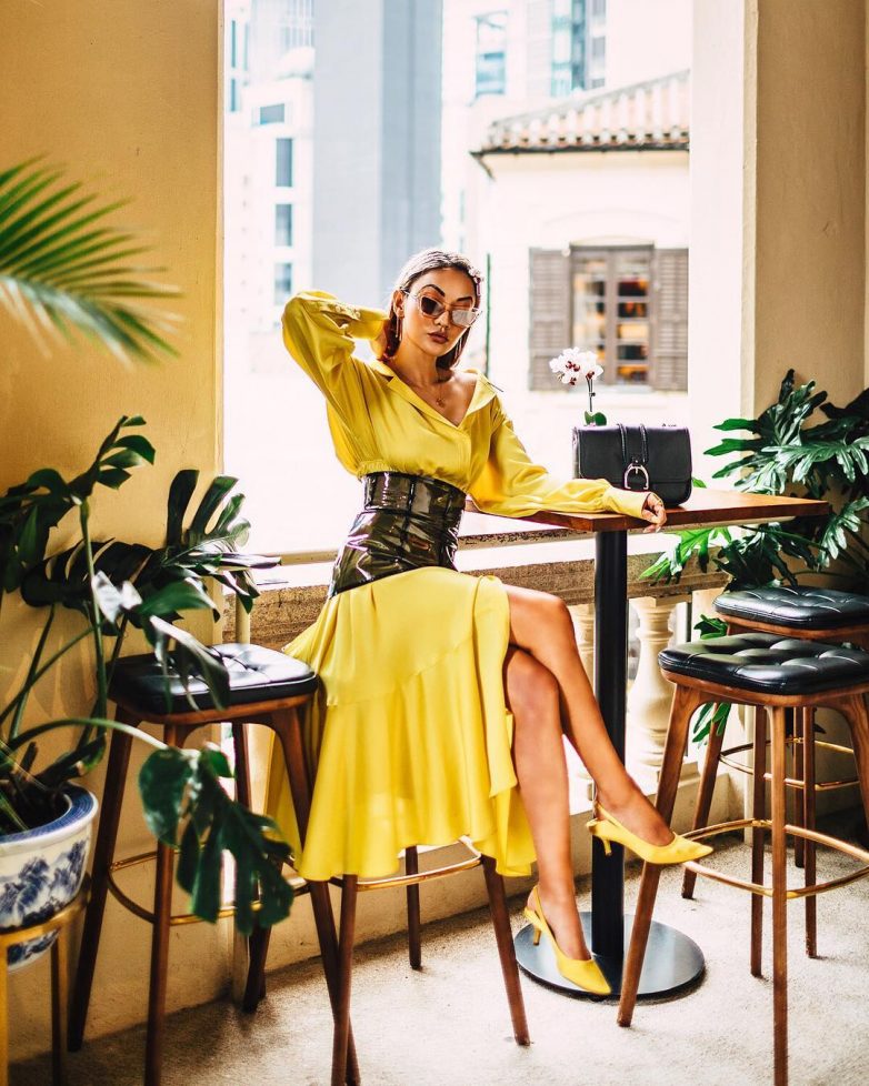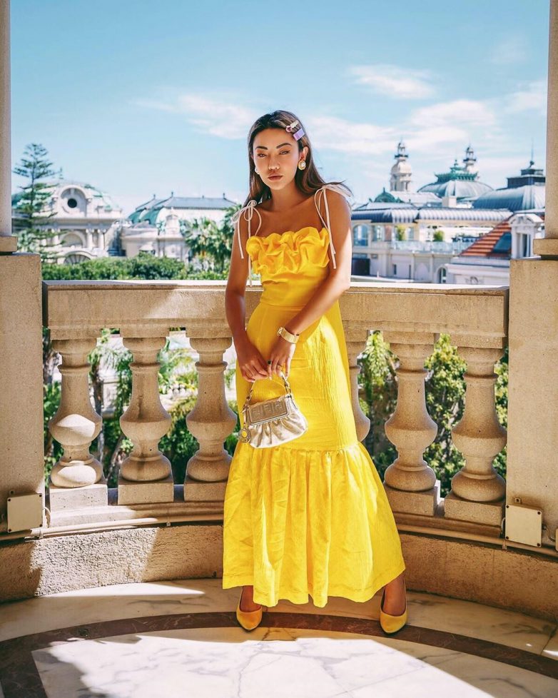 Как стильно носить желтое платье с завышенной талией