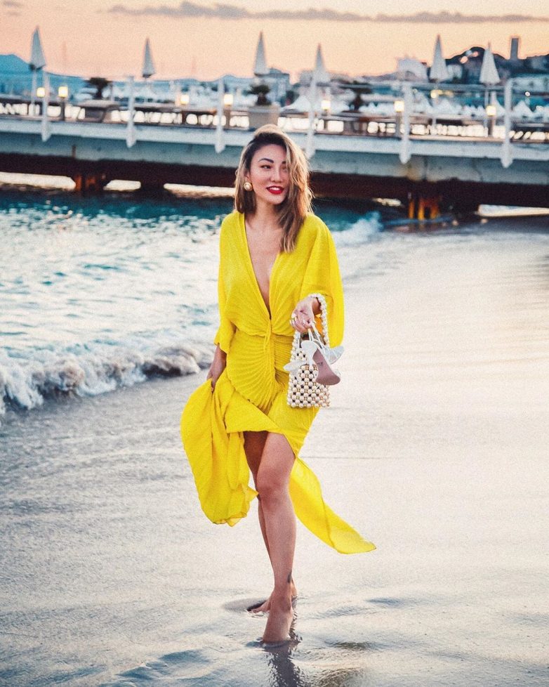 Как стильно носить желтое полупрозрачное платье