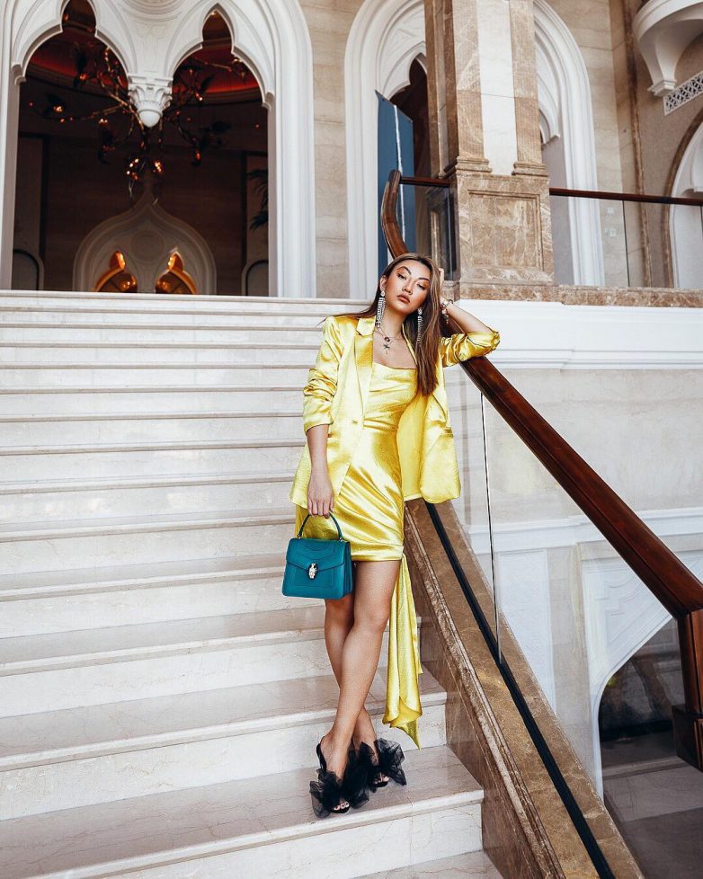Как стильно носить желтое короткое платье