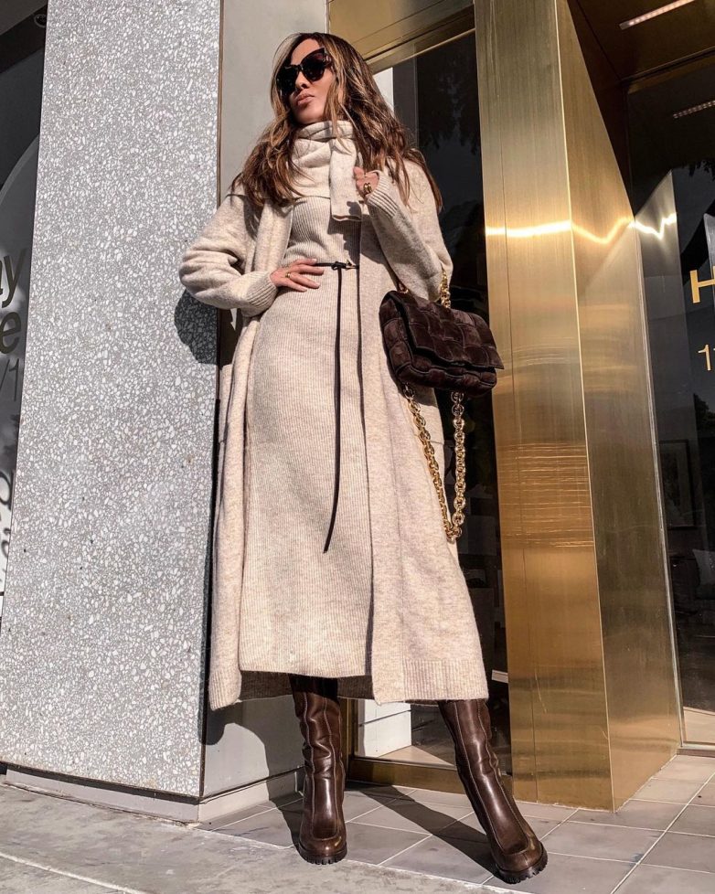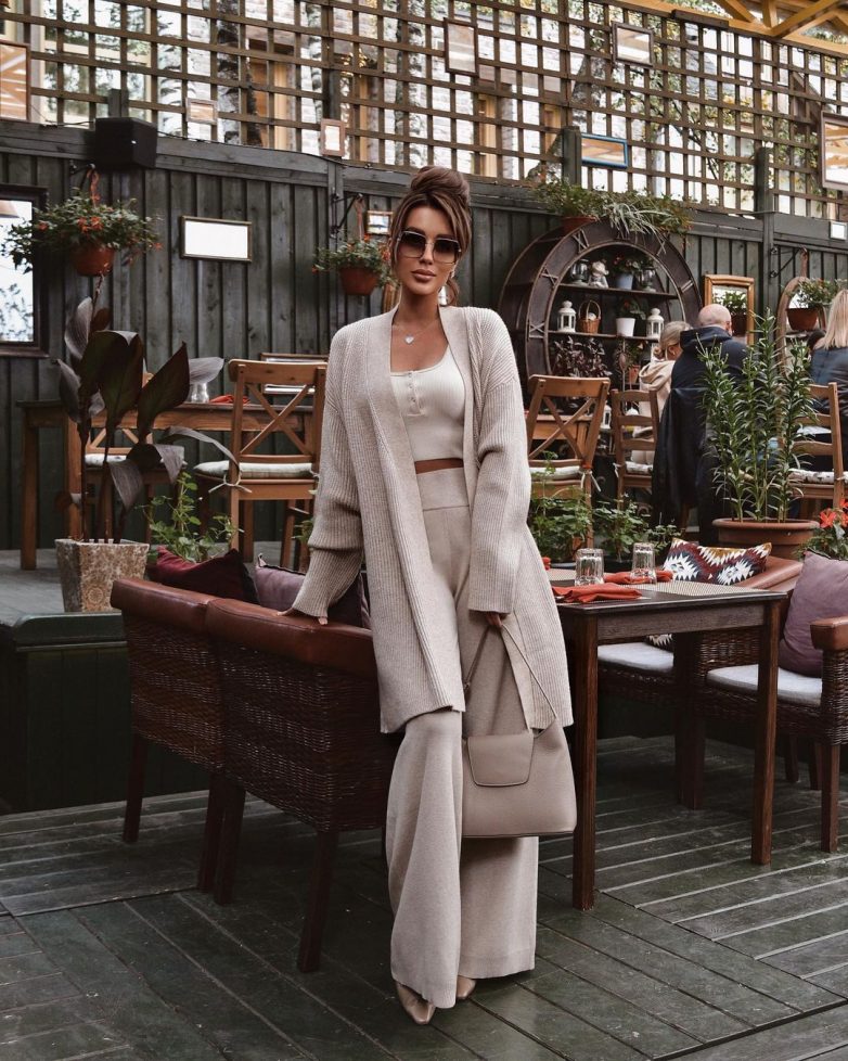 Как стильно носить трикотажный монохромный образ осенью