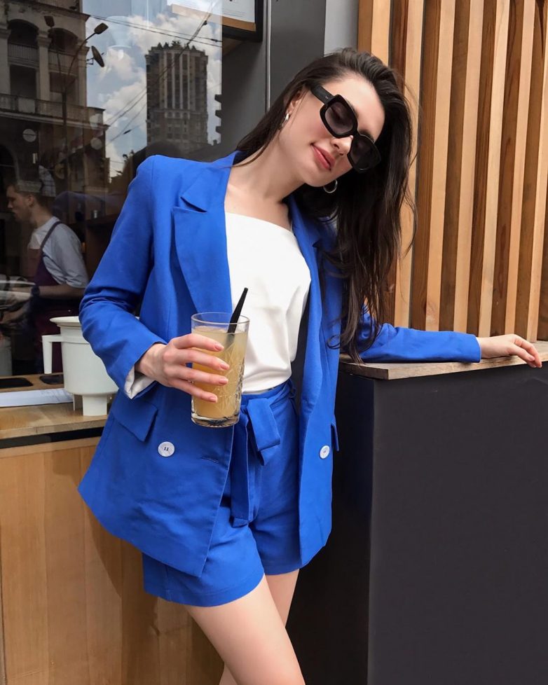 Модный total look в синем цвете получится непосредственно и в вечернем или праздничном образе.