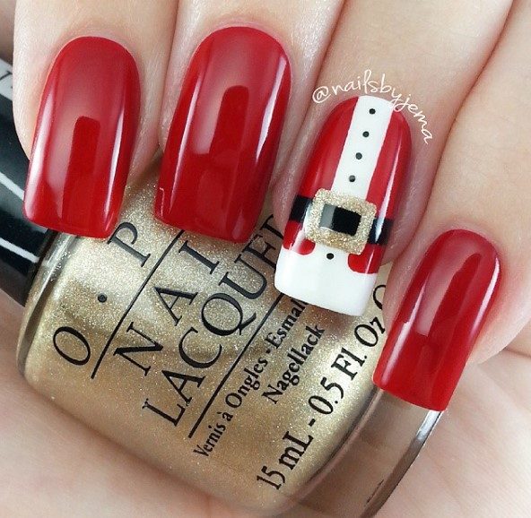 Именно поэтому многие креативные дамы выбирают оригинальный маникюр с тематикой чудесного Нового года. Главным героем праздника является Санта-Клаус, и он отлично дополнит торжественный дизайн любого маникюра.