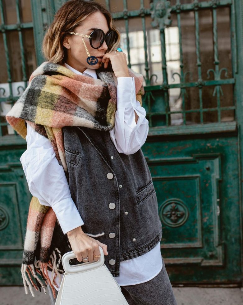 Шарф с принтом клетка можно найти даже у вашей бабушки. Конечно, сейчас рисунок стал более стильным, поэтому лучше все-таки купить новую модель. Вечная классика считается универсальной, поэтому проблем с комбинацией возникнуть не должно.