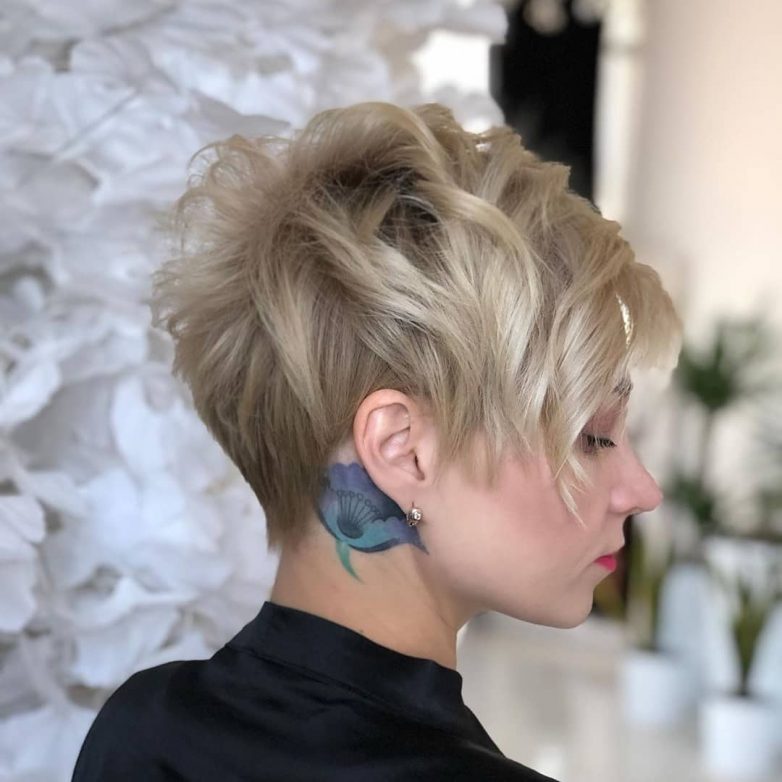 На коротких волосах тоже можно сделать очень яркие и оригинальные укладки к Новому году. В 2022 году смелые женщины обязательно попробуют дерзкий ирокез или взбалмошную прическу, предварительно покрасив волосы в яркий цвет. Милые леди выбирают простые укладки, которые предполагают только небольшой объем и боковой пробор.