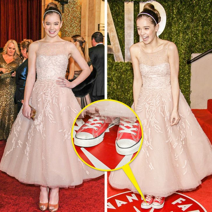 Выбор обуви большего размера не единственный трюк, который используют знаменитости, чтобы ногам было комфортно во время долгих мероприятий. Зачем мучить себя и носить неудобные каблуки, если можно просто надеть кроссовки? Так и поступили актрисы Хейли Стайнфелд и Салли Филд во время вечеринок Vanity Fair по случаю вручения премии «Оскар».