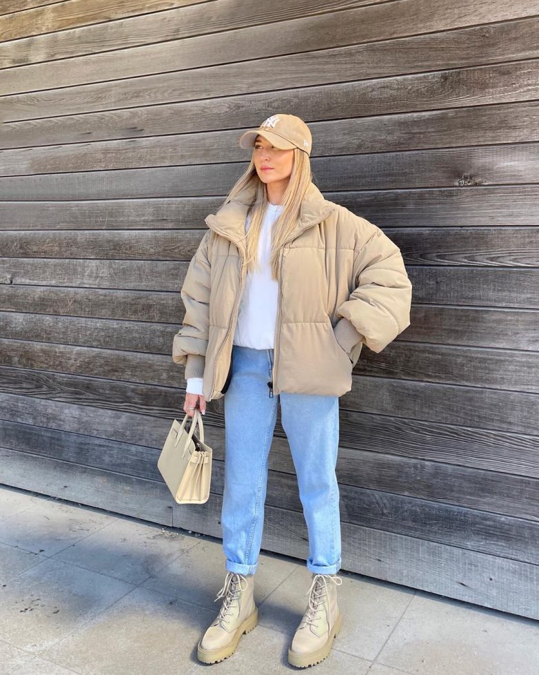 Городской образ на будний день будет более комфортным, если в качестве основы вы решите надеть стильный пуховик. Зимние образы с этой верхней одеждой гарантируют вам тепло и модный имидж.