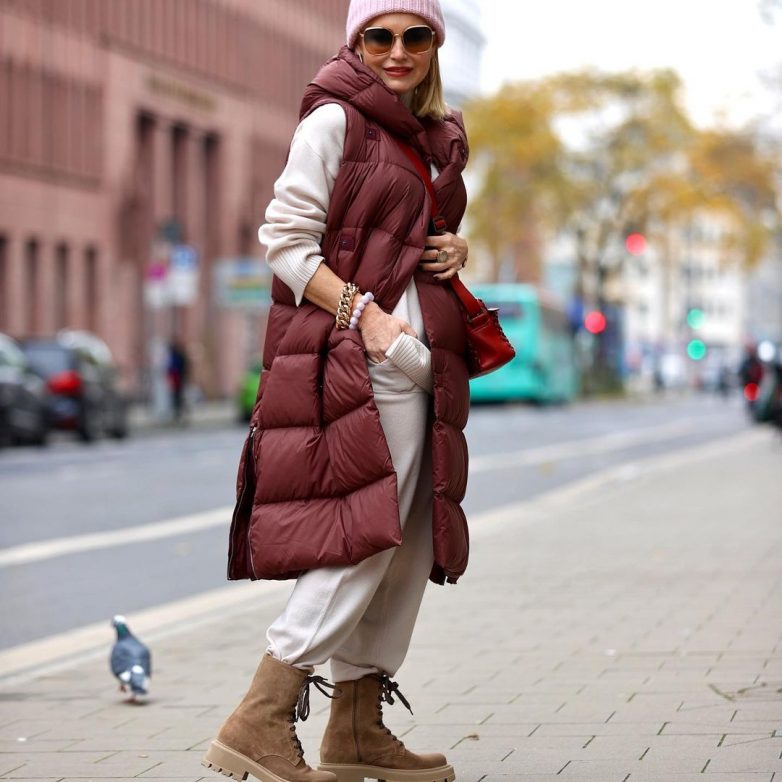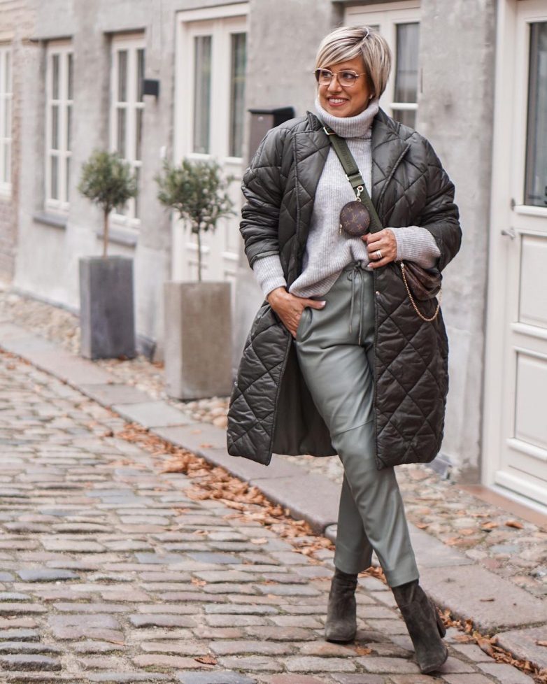 Практичное стеганое пальто подойдет для межсезонья. С такой верхней одеждой одинаково хорошо получаются деловые и повседневные образы на каждый день. Главное достоинство стеганого пальто – это практичность изделия и универсальность модели, но еще один факт в том, что дама 40 лет получит всегда стильный имидж. Носить его можно с высоким каблуком и грубой подошвой.
