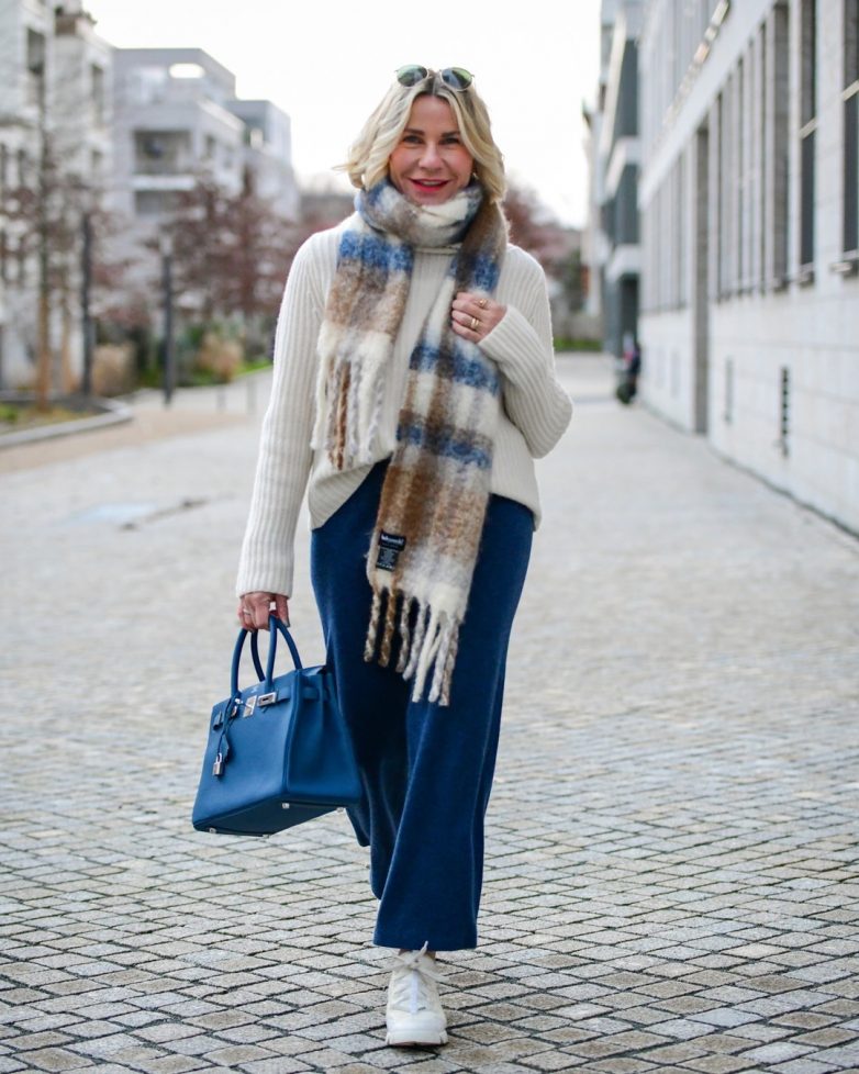 Настоящий писк моды, который всегда в тренде – это комбинация пальто и шарфа. Стилисты утверждают, что в этом тандеме хорошо работают любые модели: шерстяные с крупным узором, в стиле оверсайз, шёлковые, короткие или палантины. Вы можете полностью укутаться в большой шарф и закончить очень уютный образ или сделать ставку на воздушный образ, накинув поверх пальто легкий шарфик.