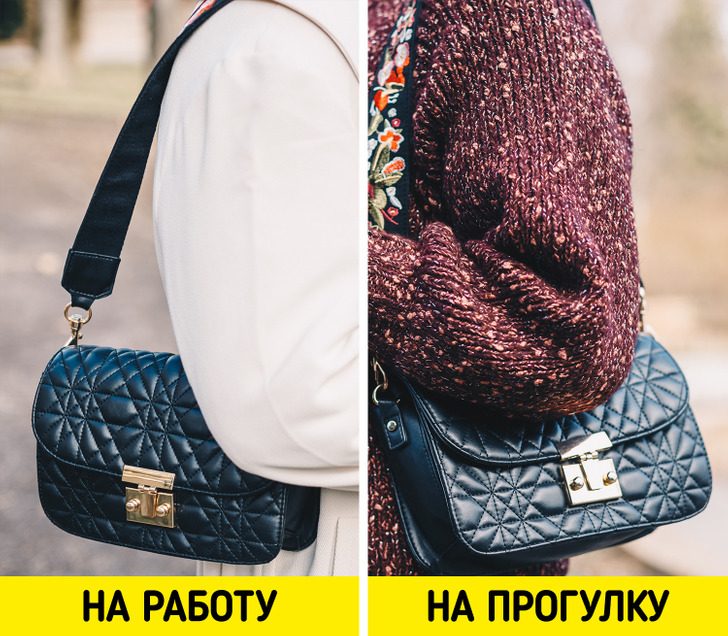Часто имеет значение даже не сам аксессуар, а то, с какой частотой его носят. Все знают: чтобы обувь меньше изнашивалась, нужно менять пары, поэтому не стоит ходить в одних и тех же сапогах каждый день. Так же и с сумками: одно изделие на все случаи жизни расскажет о вас больше, чем вам хотелось бы говорить людям.